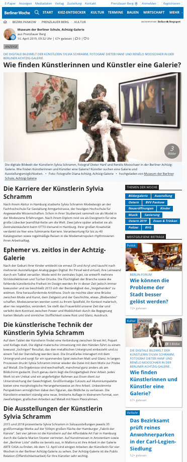 AUSSTELLUNG noch bis zum 08.05.2019, Achtzig-Galerie, Hagenauer Str. 7, 10435 Berlin, Prentzlauer Berg