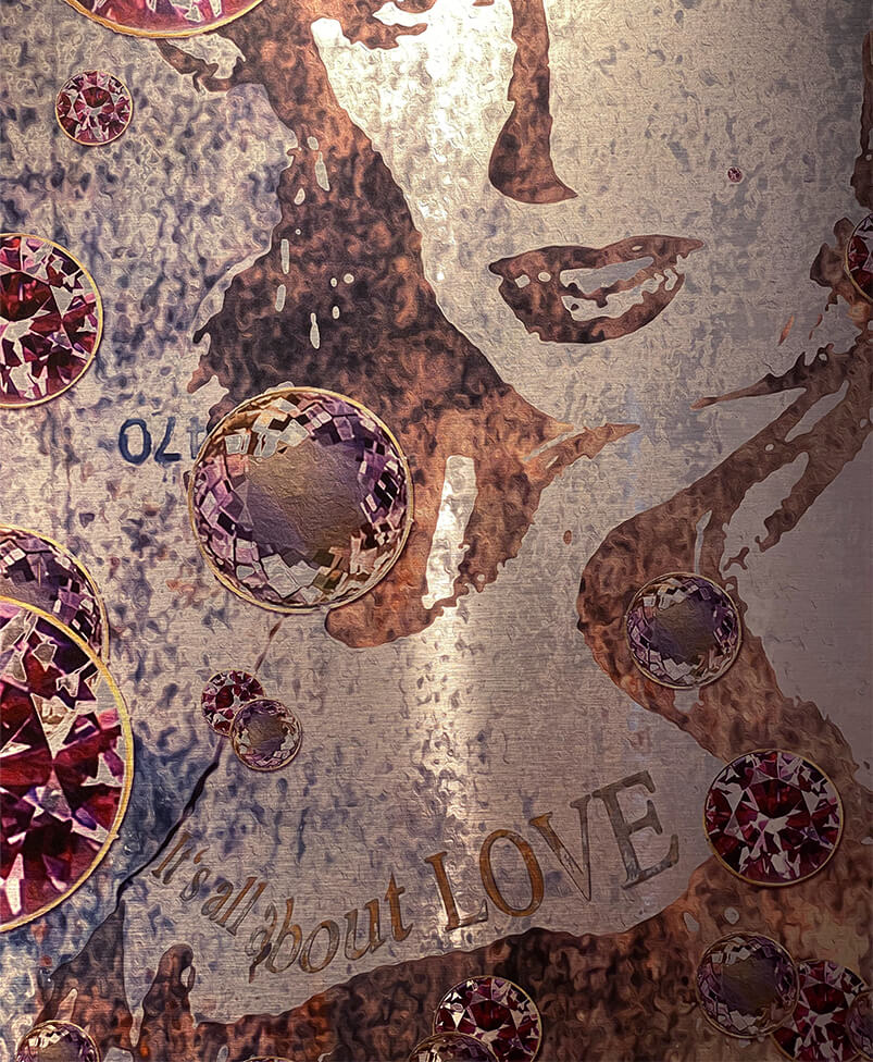 PARADISE GLAMOUR, 145 x 105 cm, Mixed Media auf Metall, Aluminiumrahmen, 2014